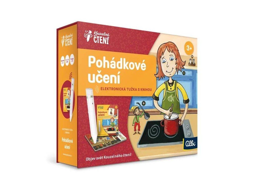 Interaktivní mluvící kniha Pohádkové učení s Elektronickou Albi tužkou z edice Kouzelné čtení seznámí děti předškolního věku s barvami, tvary, části těla, čísly nebo třeba protiklady. Celou knihou je doprovodí skřítek Zvídálek. Veselého skřítka zajímá úplně všechno a nebojí se zapojit ani do práce na zahrádce. Zavede děti i do divadla nebo na nákup, navštíví s nimi pana doktora i mateřskou školku.