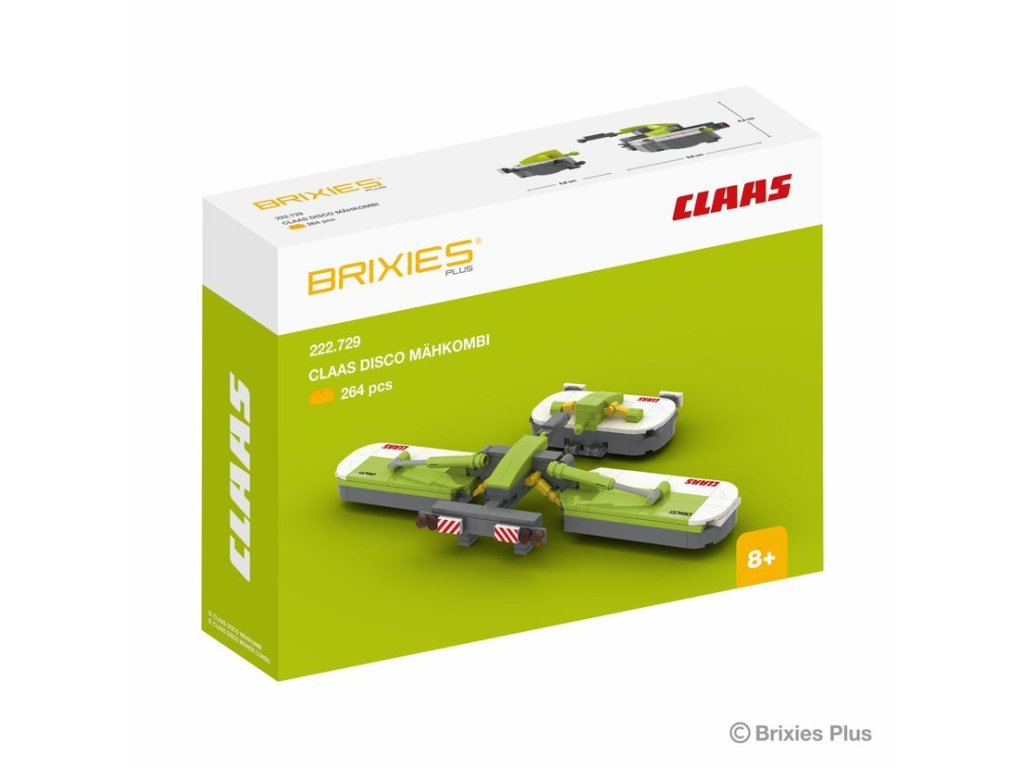 Tato detailně propracovaná stavebnice obsahuje celkem 264 dílků, ze kterých si nejenom děti, ale i dospělí mohou postavit model efektivní žací diskové sekačky s vysokým pracovním výkonem CLAAS DISCO. Po sestavení dosahuje model rozměrů: cca 15,2 x 4,3 x 27,2 cm (d x v x š). Tato stavebnice je inspirovaná skutečným strojem, což zajišťuje věrné zachycení jeho charakteristických prvků a jedinečného designu. Stavebnice BRIXIES Plus je určena pro děti od 6 nebo 8 let a díky větším dílkům, než má řada Brixies, je kompatibilní s jinými stavebnicemi z kostek podobného typu. Kvalitní ABS plast zaručuje vysokou odolnost a dlouhou životnost. Všechny komponenty splňují aktuální bezpečnostní normy. Značka BRIXIES Plus nabízí 5letou záruku na dodání náhradních dílů, pokud náhradní díl chybí nebo je vadný. Počet uvedených kostek na jednotlivých obalech se může lišit s ohledem na vývoj stavebnice. Návod na sestavení je součástí balení. Vyrobeno v Číně, navrženo v Německu. Doporučený věk od 8 let.