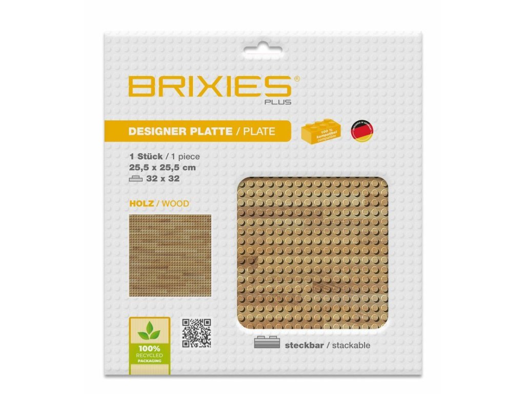 BRIXIES Plus 225.002 Designová podložka na stavění - dřevo 25,5 x 25,5 cm