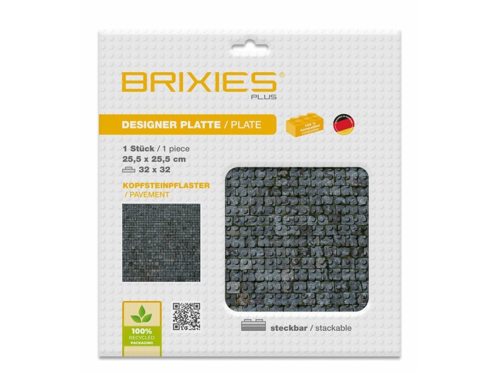 Objevte zábavu a kreativitu se stavebnicí BRIXIES Plus! Designová podložka na stavění – dlažební kostky je designově zpracovaná hrací podložka, která díky svému unikátnímu grafickému provedení nabízí všem stavitelům a milovníkům tohoto druhu stavebnic z plastových kostiček, realističtější pocit z jejich finálních staveb, které vypadají jako kdyby stály na vydlážděné ploše nebo vedle ní. Její nápadité tematické zpracování jistě ocení nejenom děti, ale i dospělí, kteří mají zálibu ve stavebnicích podobného druhu, se kterými je tato deska plnohodnotně kompatibilní. Deska má 32 x 32 výstupků a rozměr 25,5 x 25,5 cm.