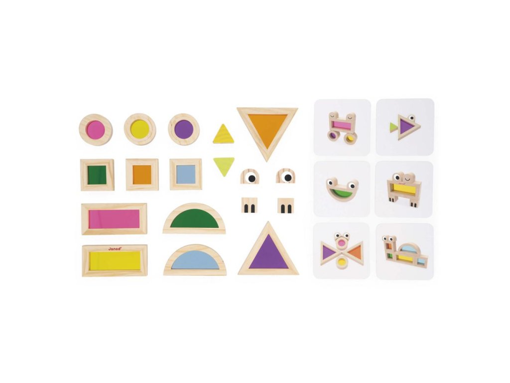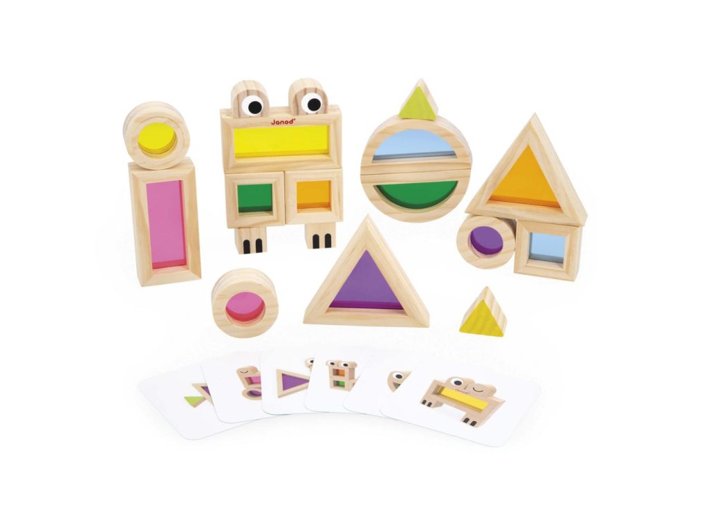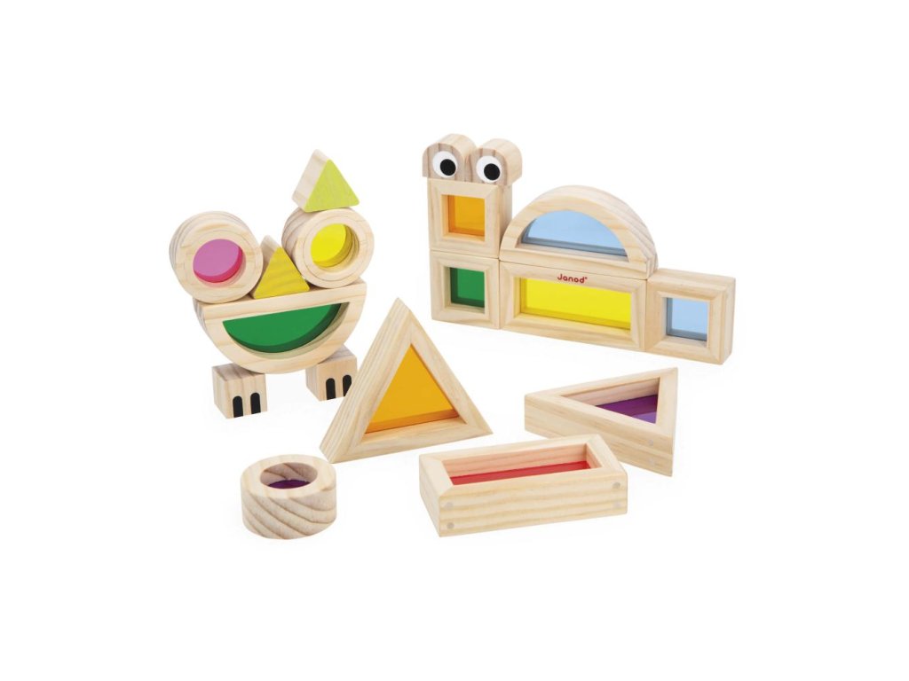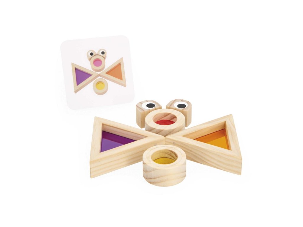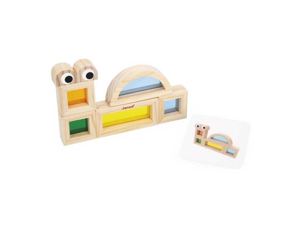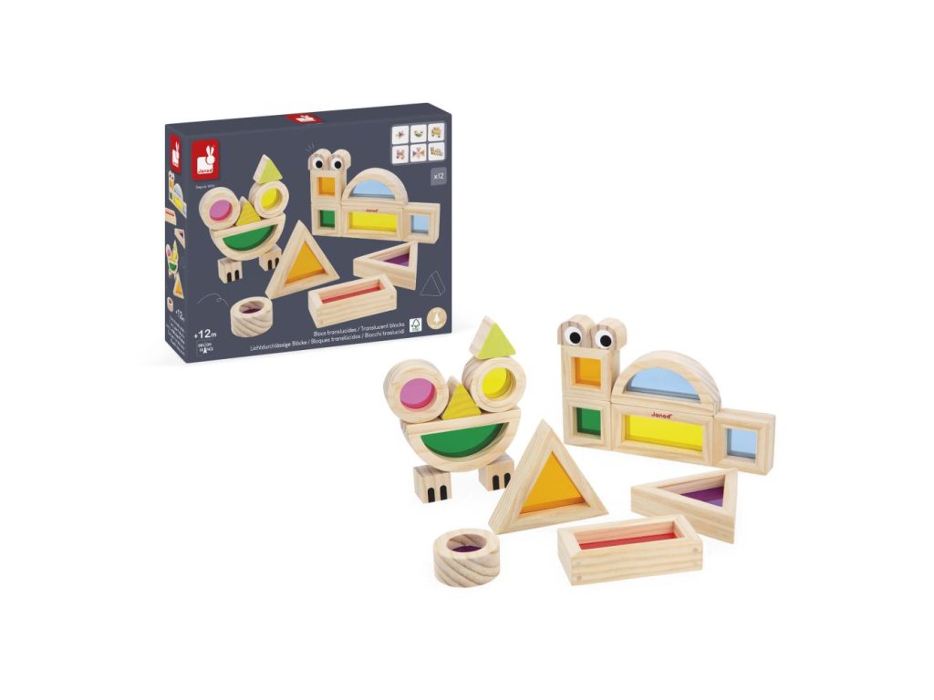 Není lepší způsob, jak vidět život v růžové, modré... zelené... než s těmito 12 pěknými průsvitnými bloky. Dodávají se s 6 malými tištěnými bloky pro výrobu nejrůznějších zábavných zvířat. Součástí balení je 6 karet se šablonami, které vám poskytnou nápady před vytvořením vlastních výtvorů. U malých dětí rozvíjejí jemné motorické dovednosti, u starších kreativitu. Dřevěná hračka FSCTM. Hračka pro časné učení pro děti od 12 měsíců.