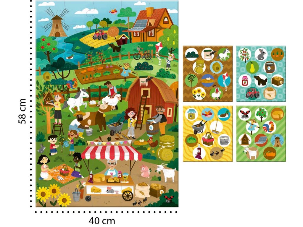 Poskládejte puzzle a zjistěte, jak funguje zelená farma. Po sestavení puzzle vezmi 4 karty a bav se hledáním všech ukrytých prvků na obrázku. Originální puzzle, které podporuje pozornost a zvídavost.