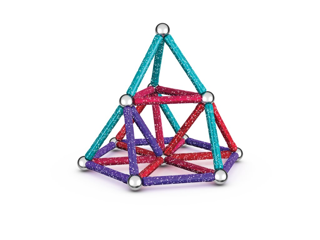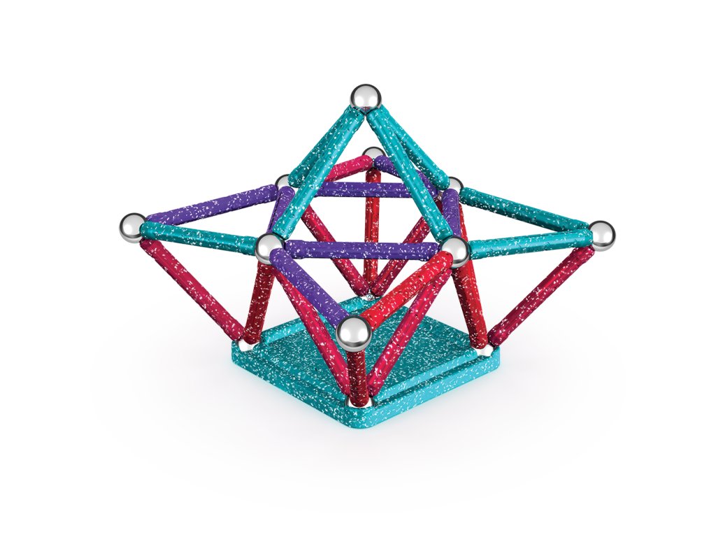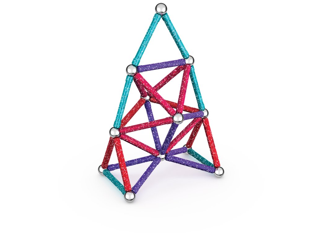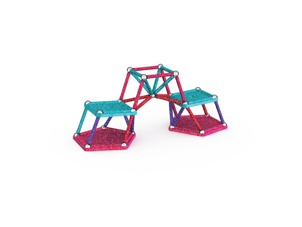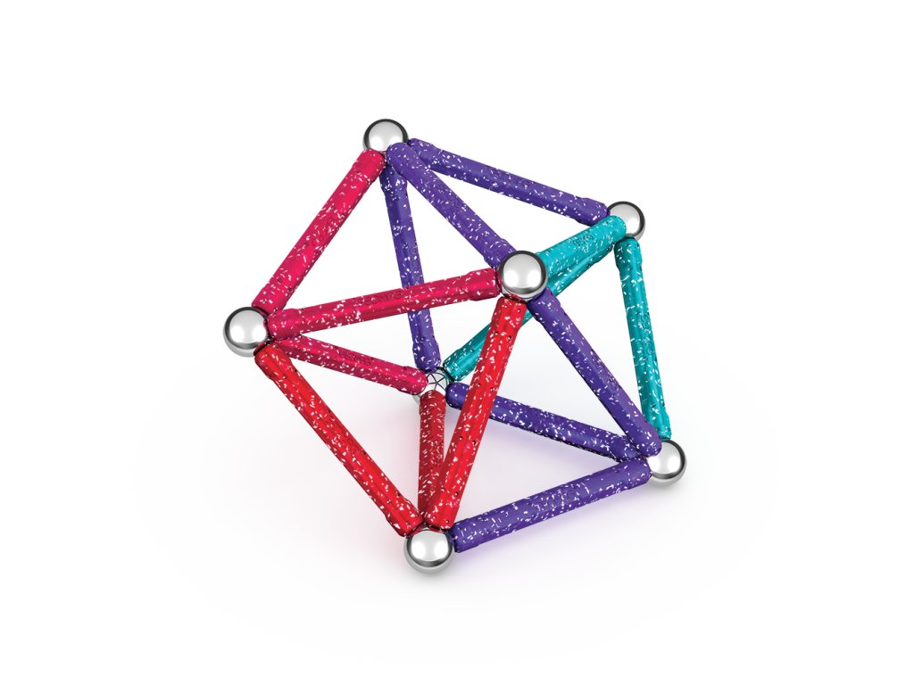 Super stylová řada Glitter, věnovaná fanouškům zářivých barev, je nyní také ze 100% recyklovaného plastu. Třpytky obsahuje i úložná plastová krabička, kterou můžeš mít stále u sebe a budou ji chtít i všichni kamarádi. Stavebnice obsahuje celkem 60 dílků - 28 barevných magnetických tyček, 28 ocelových kuliček, 2 modré čtvercové podstavce a 2 pětiúhelníkové červené podstavce. Kromě kuliček obsahují všechny součástky, včetně plastového pouzdra, třpytky. Stavebnice je určena pro děti od 3 let a je ze 100% recyklovaného plastu.