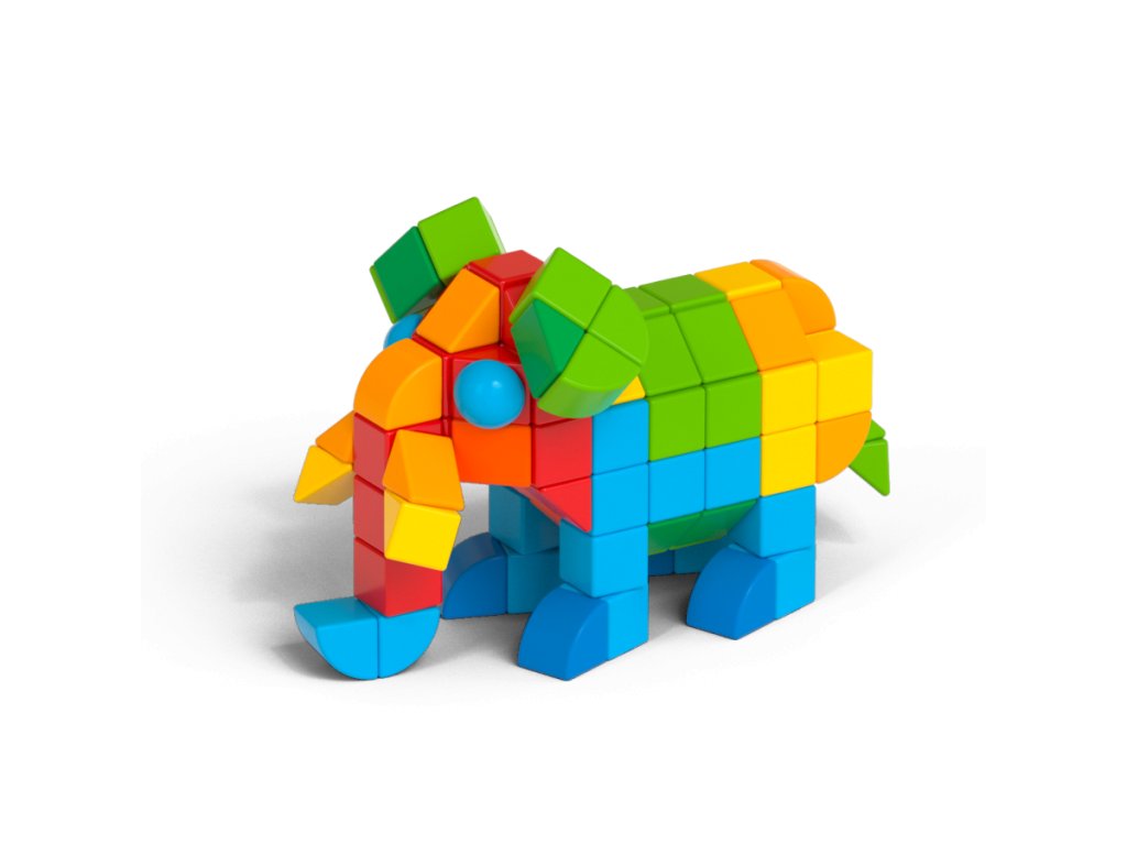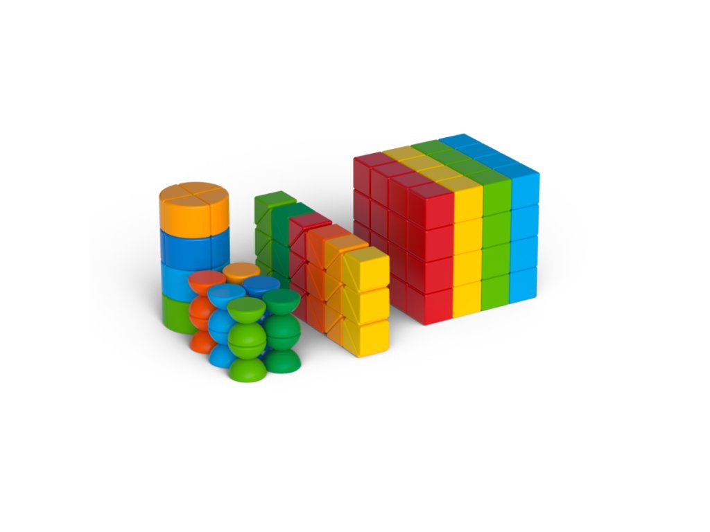 Kromě magnetických krychliček jsou součástí této sady také další tři magnetické tvary v osmi barevných variantách. Obsahuje celkem 140 magnetických dílků a 24 karet s předkreslenými návrhy 1:1. Vhodné od 1 roku. Baleno volně ložené v kartonové krabici.