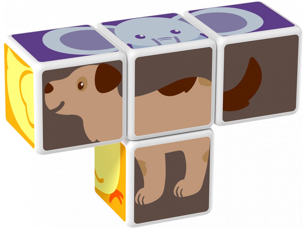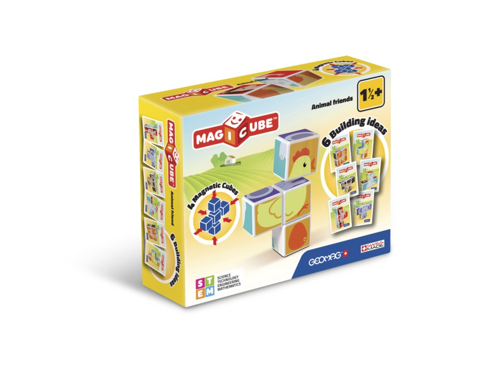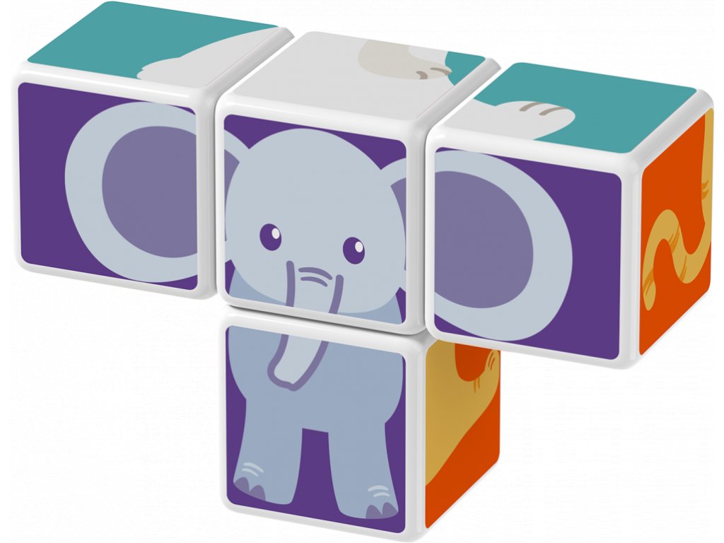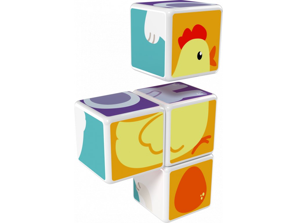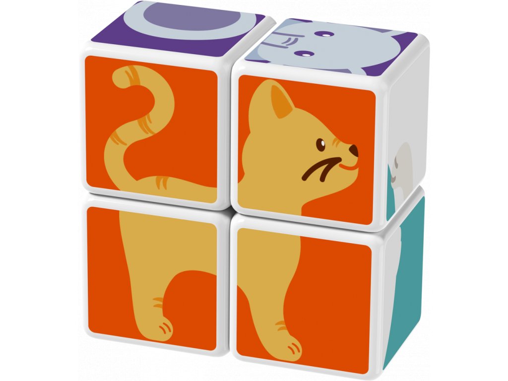 Děti si mohou poskládat svá nejoblíbenější zvířátka snadným spojováním a otáčením kostiček. Obsahuje 4 magnetické kostičky a 6 tipů na skládání (3 kartičky). Určeno pro děti od 1,5 roku.