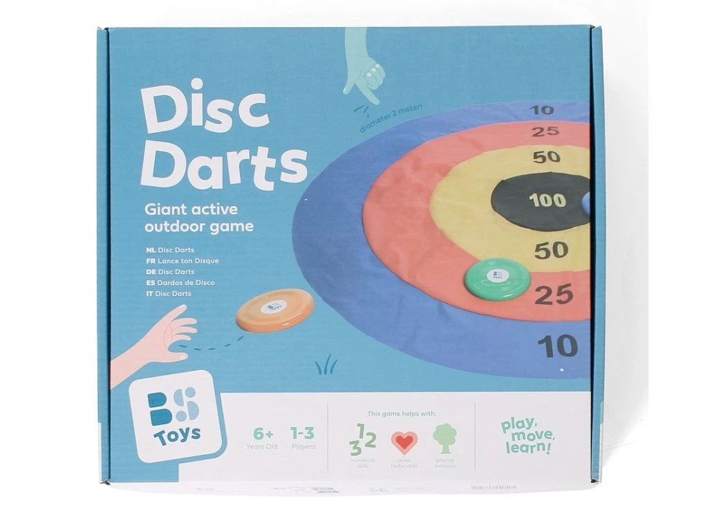 Šipky trochu jinak pro 1 až 3 hráče. Hráči se pokouší získat co nejvíce bodů házením tří disků na barevný velký terč. Průměr terče je 2 metry. Hra rozvíjí motoriku a početní dovednosti.