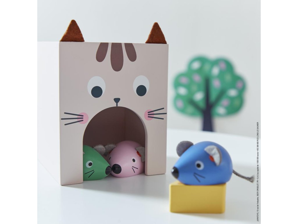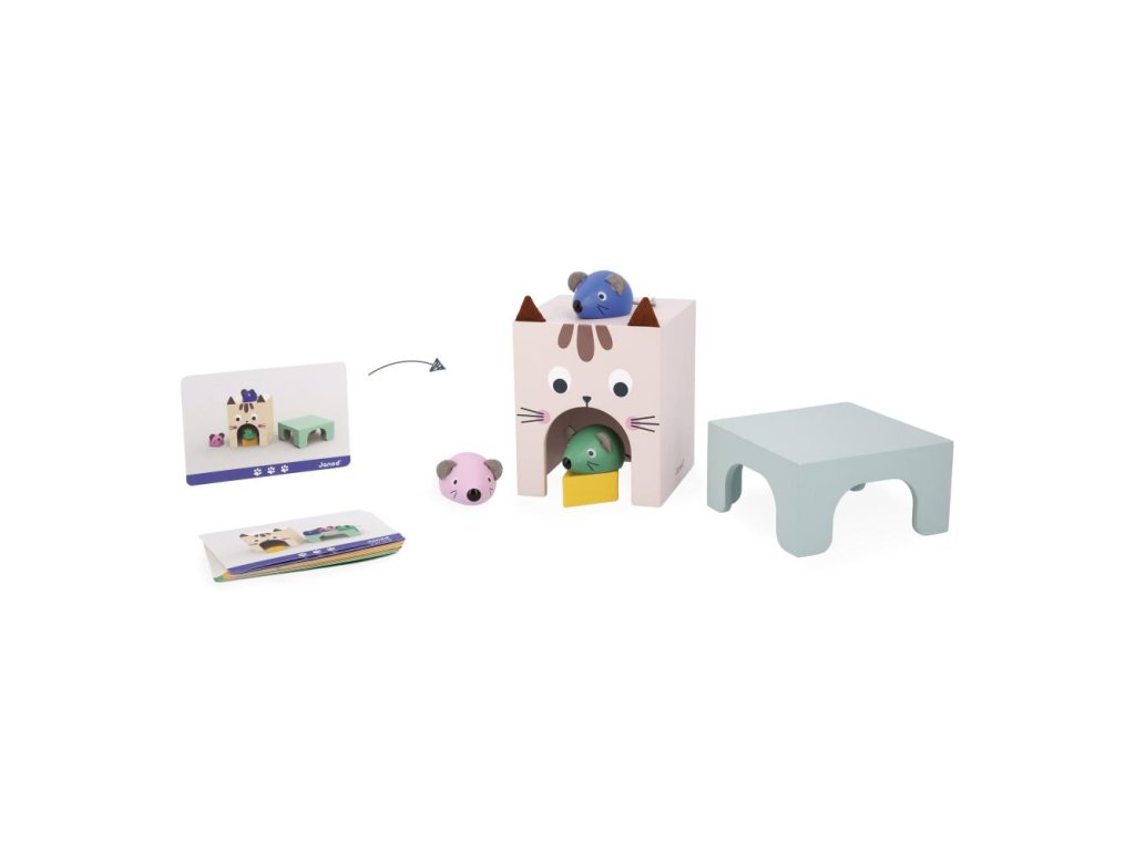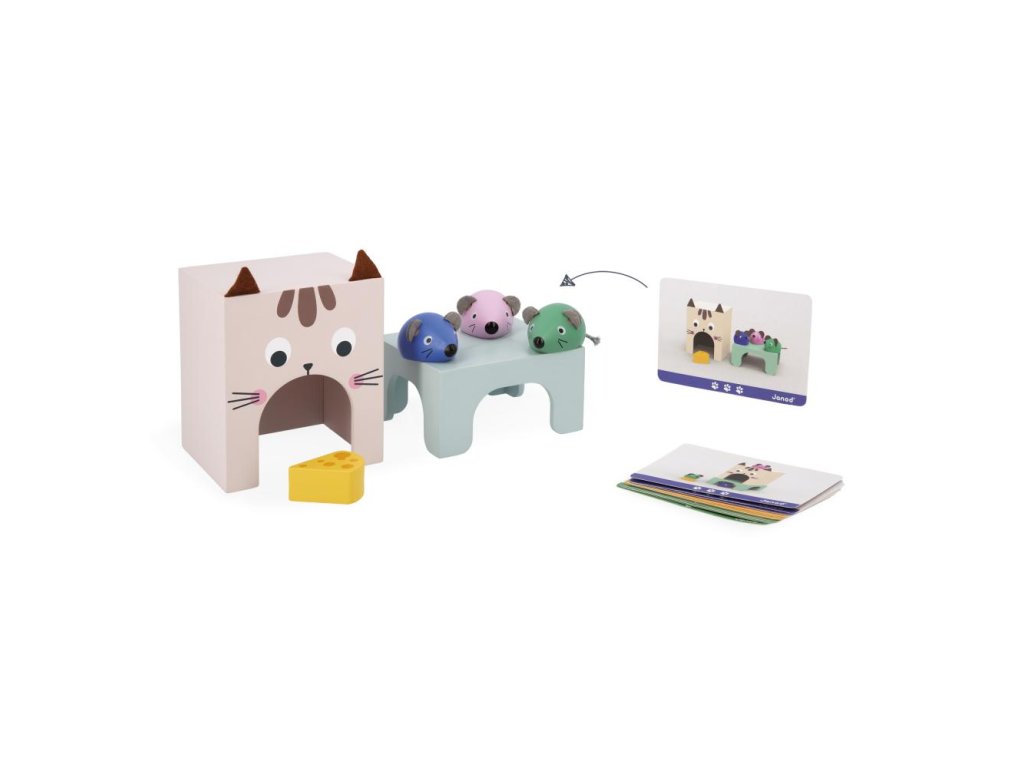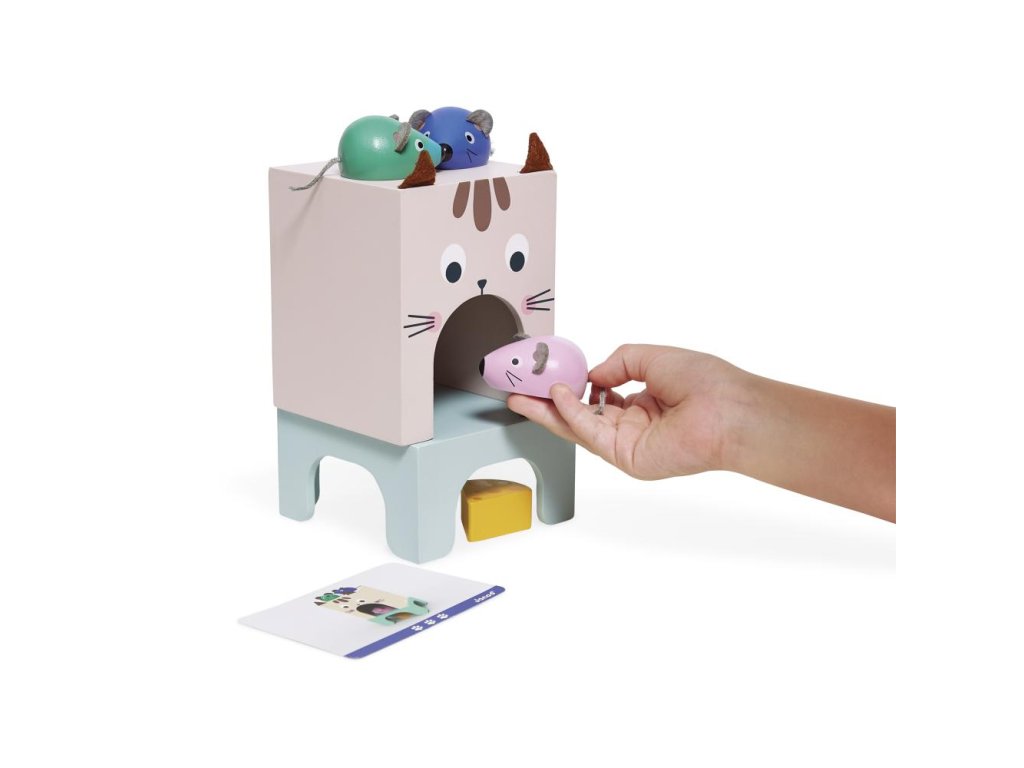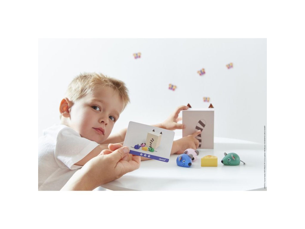 Kam zmizely malé myšky? Doprava? Doleva? Doprovázejte své dítě skvělým příběhem o přátelství mezi kočkou a jejími 3 kamarády. Tato krásná hře pro jednoho nebo dva hráče pomůže dětem naučit se orientovat v prostoru a rozvíjet si slovní zásobu a zároveň si děti užijí spoustu zábavy.