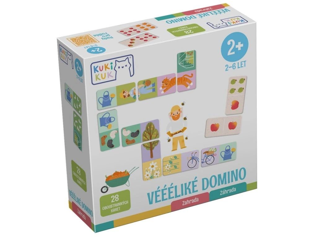 Na lícové straně jsou ke složení obrázky zvířat, zahradníků a jejich náčiní. Na rubové straně naleznete puntíky vytvořené z různých druhů ovoce – ideální pro hru domino.
