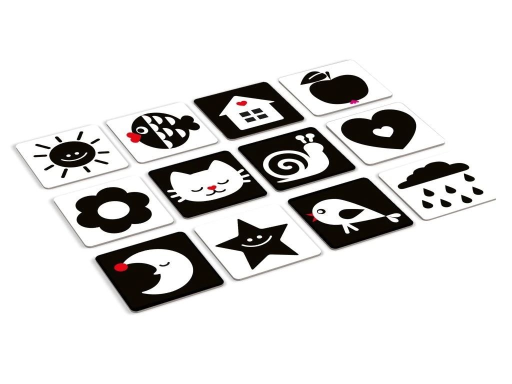 Sada 24 velkých kontrastních obrázků je ideální pro přirozený rozvoj zraku a pozornosti u miminek.
