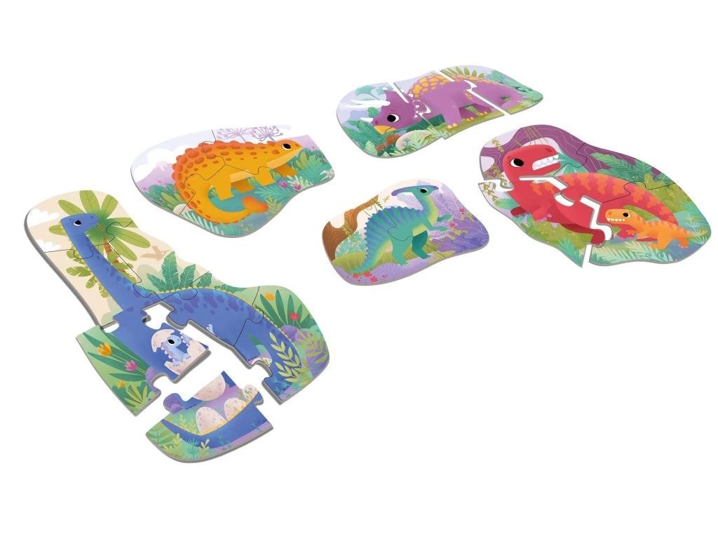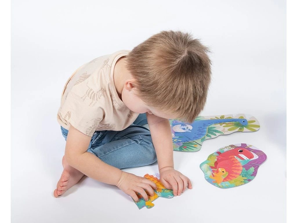 Už nejmenší děti mohou sestavovat puzzle a trénovat tak jemnou motoriku i obrazotvornost. Nejprve dinosaury skládají ze dvou, pak ze tří a nakonec až ze sedmi dílků.