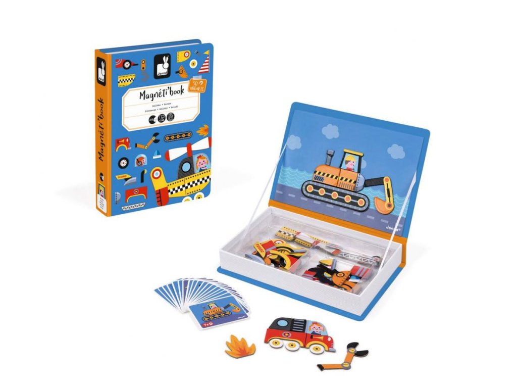 Kniha Magneti'Book Vehicles od renomovaného výrobce Janod je úžasná magnetická hračka vhodná pro děti od 3 do 8 let. Magnetická skládačka má jedinečný design s pěknými obrázky, kterým nepohrdne žádný malý rošťák.