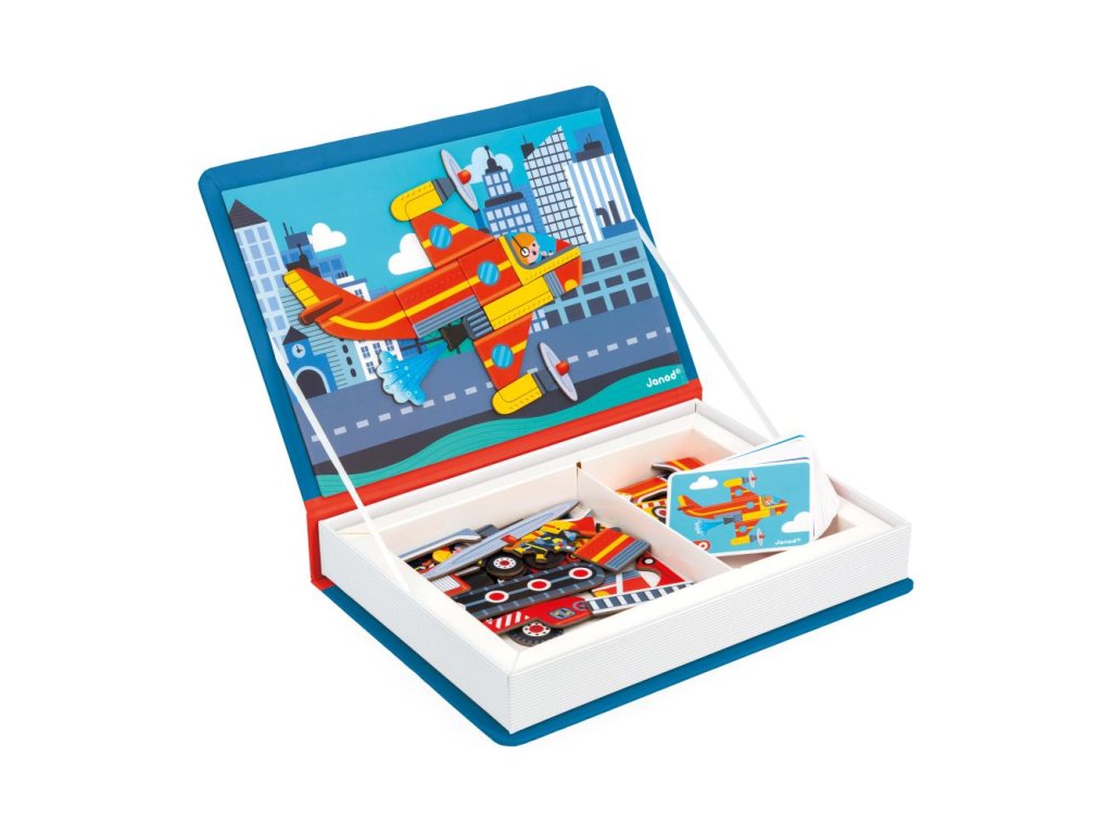 Děti mohou buď skládat obrázky podle předlohy, nebo si mohou svobodně vymýšlet své vlastní obrázky. Jejich kreativitě se meze nekladou: magnety lze libovolně míchat a spojovat. Tato magnetická kniha se skládá ze 60 magnetů a 18 barevných karet modelů , které zobrazují hasiče a jejich vozidla. Vydejte se k moři nebo nahoru na oblohu: každé hasičské vozidlo ožije doslova v rukou vašeho dítěte. Po vytvoření můžete snít! Formát magnetické knihy je velmi praktický a ultrapřenosný, aby se dětská fantazie neomezovala jen na stěny z domova. Tyto dílky jsou navrženy speciálně pro malé ručičky – zdokonalí motoriku vašich nejmenších. Tato magnetická sada je součástí velké rodiny hraček Magnéti'book, které probouzí zvědavost a kreativitu. Tato magnetická vzdělávací hra je vyrobena z kartonu s certifikátem FSC™.