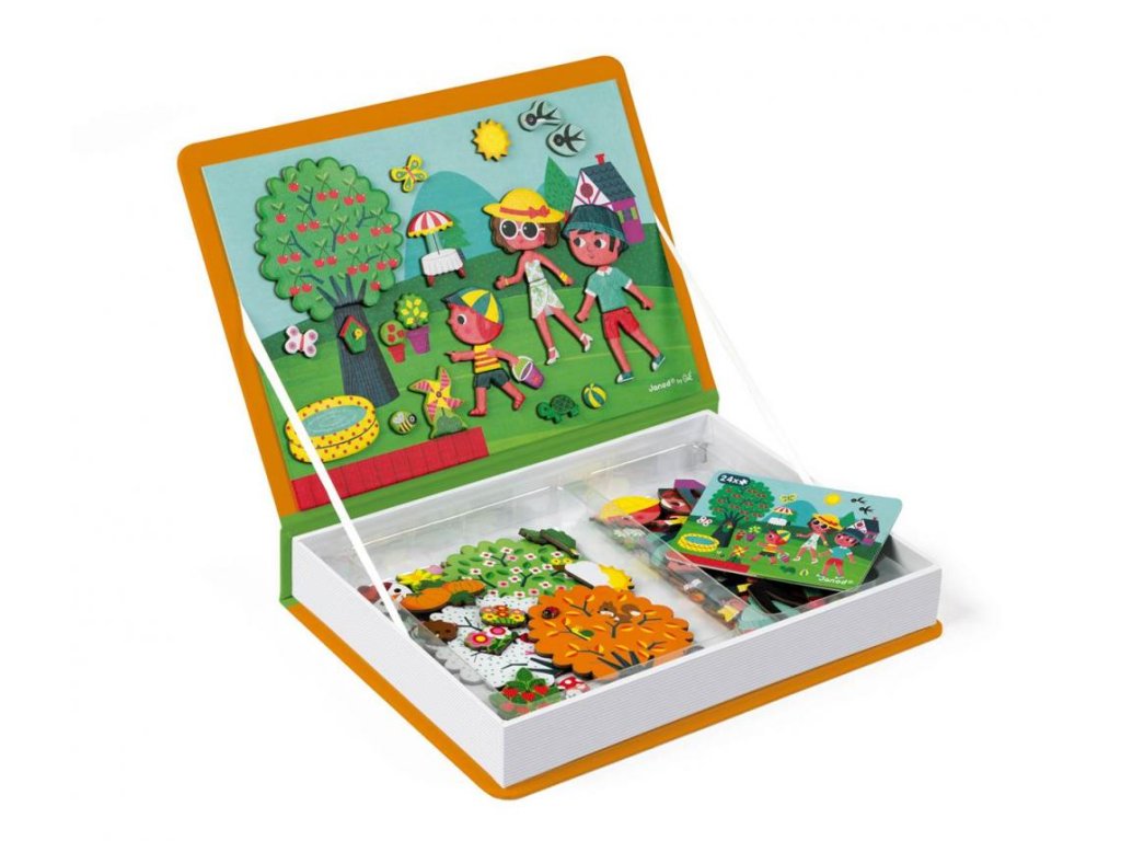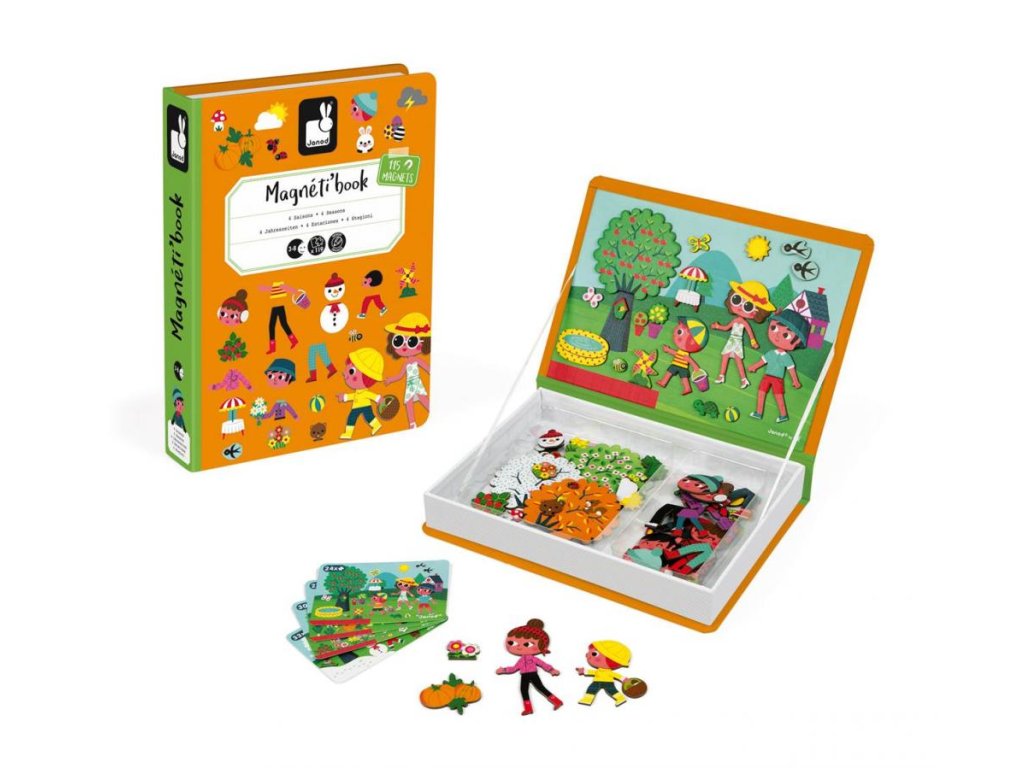 Magnetická kniha Magneti'Book Four Seasons je krásná hračka vhodná pro děti od 3 do 8 let. Magnetická skládačka ve tvaru knihy má pestrobarevný motiv, který dětí zaujme. Zabavte vaše děti skládáním obrázků z magnetických dílků podle předlohy. Děti hádají roční období a skládají scenérii tohoto období s vhodným oblečením a doplňky.