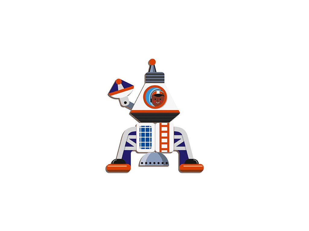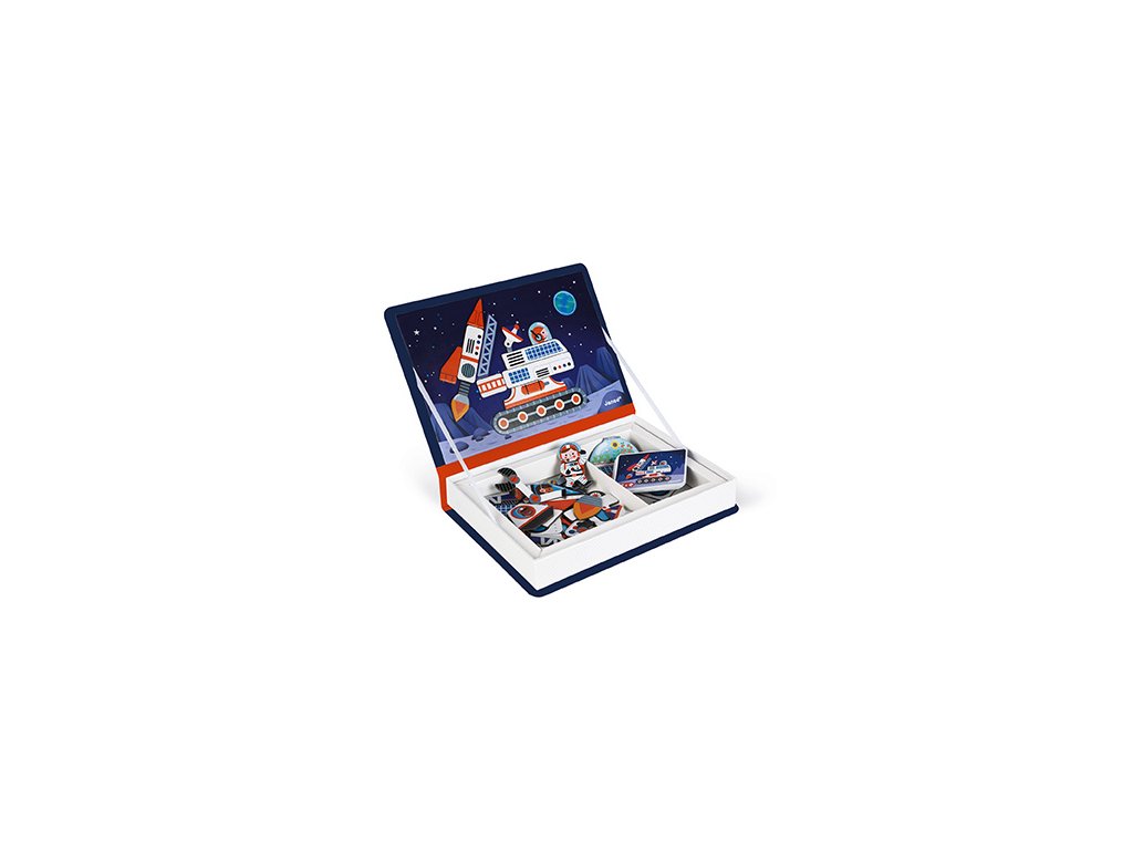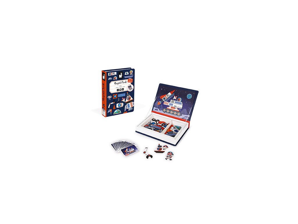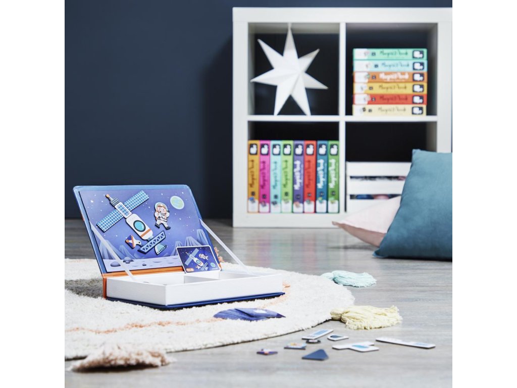 Zabavte vaše děti skládáním obrázků z magnetických dílků podle předlohy. Magnetická kniha – magnetibook je krásná vzdělávací hračka vhodná pro děti od 3 do 8 let. Magnetická skládačka ve tvaru knihy má pestrobarevný motiv, který dětí zaujme na dlouhé hodiny. Obsahuje předlohové karty a magnetky, pomocí kterých se na magnetické pozadí knihy vytváří obrázek podle vybrané karty. Děti mohou použít také fantazii a skládat si různé obrázky dle vlastní představivosti. Magnetky lze používat i na magnetické tabule. Praktické balení umožňuje hračku pohodlně přenášet, čímž se děti s ní zabaví nejen doma, ale také na dlouhých cestách autem nebo letadlem. Magnetická kniha pro děti je krásná nadčasová hračka pro každé dítě, která se bude líbit několika generacím, vyrobená z kvalitních materiálů a zdravotně nezávadných barev. Obsahuje 52 magnetek a 18 karet pro vytvoření vesmírných vozů.