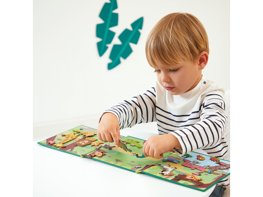 Vhodné na doma, ale také na cesty, na chatu, do restaurace, všude kde potřebujeme děti rychle a efektivně zabavit. Magnetické díly pevně drží na knize, samotná kniha je tenká a skladná a proto je vhodná k přenášení.