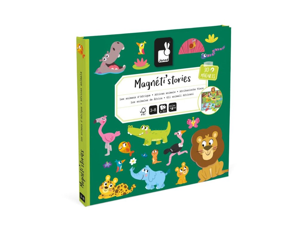 Je čas objevit africká zvířata! Lev, slon, opice, surikata a dokonce i piraňa, všichni trpělivě čekají na jakékoli nové dobrodružství, které si vaše dítě vymyslí. Tato knížka obsahuje vše, co prcky budou potřebovat k vymýšlení nekonečných příběhů: velké magnetické pozadí a 30 magnetek zobrazujících zvířátka nebo dekorace.