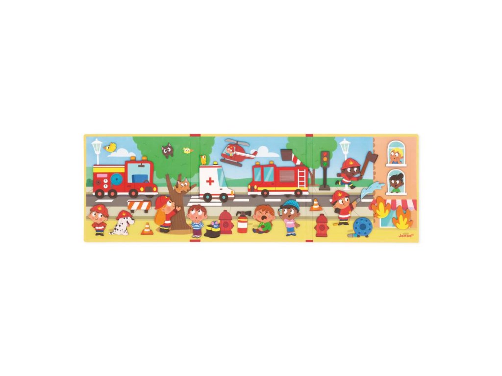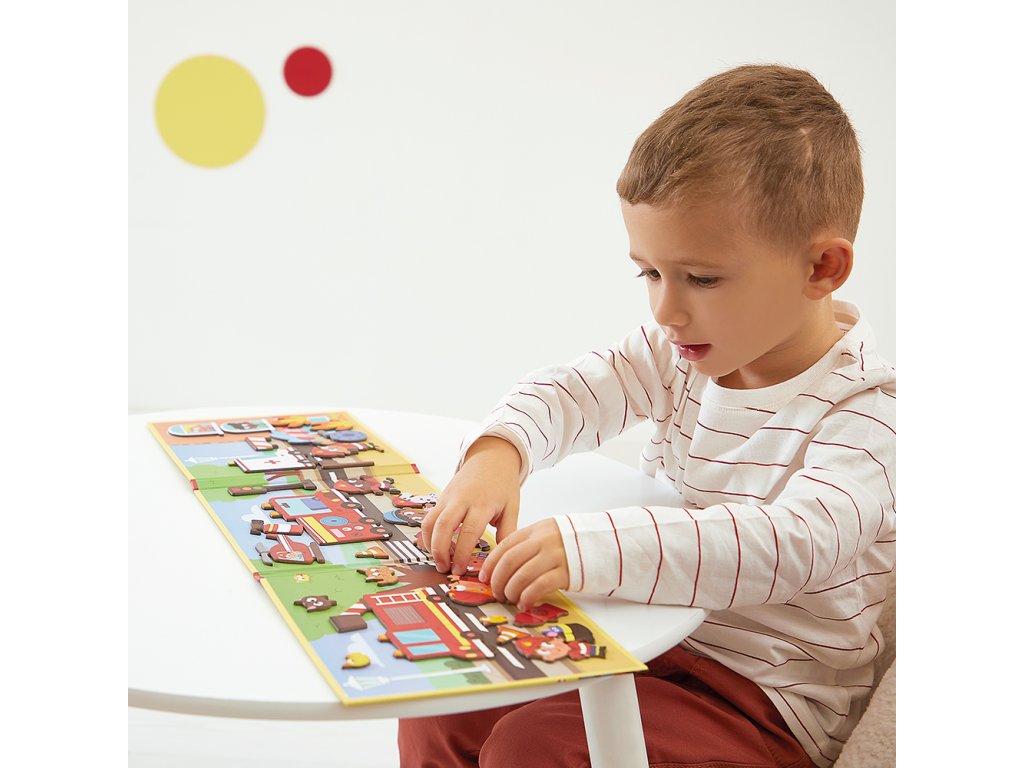 Rozkládací magnetická kniha Požárníci pro děti od 3 let je vhodná pro cestování plné dobrodružných zážitků a příběhů, obsahuje 30 magnetických částí.