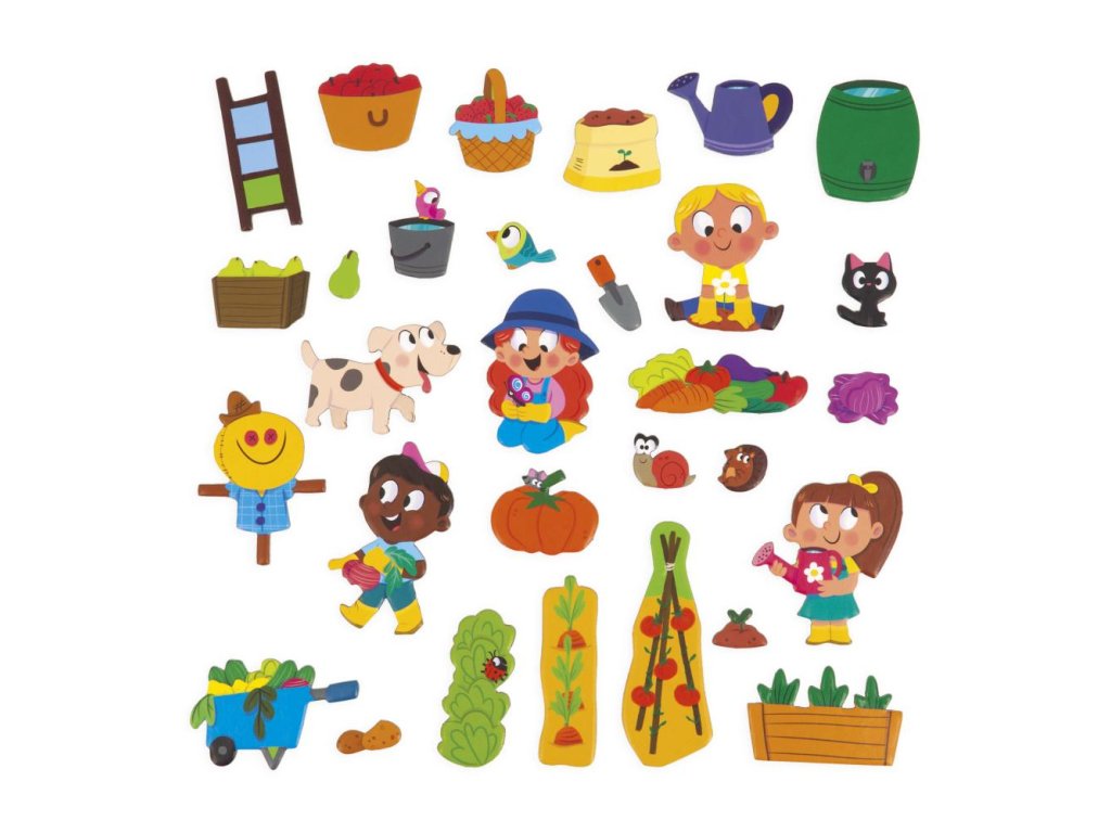 "Pomůžeš mi zalít rajčata?" Vaše děti od 3 let objeví radost ze zahrádkářství s touto ilustrovanou magnetickou sadou, která kombinuje ovoce a zeleninu ze zahrady. Tato magnetická hra obsahuje sadu magnetů a 30 magnetů. Jemné motorické dovednosti, které jsou základem raného učení vašeho dítěte, se budou rozvíjet uchopením magnetizovaných částí. Fantazie nezůstane pozadu, protože každý magnet po ponoření do dekorace zve děti, aby si vytvořily svůj vlastní příběh. Saláty dobře vyrostly, jablka jsou připravena ke sklizni a strašák se těší, že má v zeleninové zahradě návštěvu! V hlavě vašeho batolete ožije spoustu zábavných scénářů! Navíc, strašák se dá postavit vertikálně, díky čemuž vám vaše dítě může vyprávět své příběhy! A co víc, stejnou soupravu lze pro snadnou přepravu sundat, takže fantazii vašeho dítěte nekladou žádné překážky. Tato magnetická tabule je součástí kolekce Magneti'sstories, skutečně zve na představivost a snění. Tato magnetická hra je vyrobena z kartonu s certifikací FSC™ a kontrolovaných materiálů.