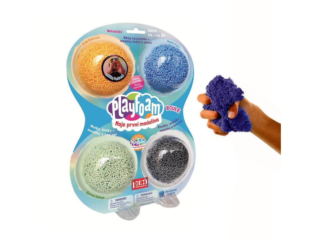 Modelína, která nešpiní, vhodná od 3 let do 10 let. PlayFoam® Boule 4pack - B - čtyři "klučičí" barvy. Lehoučká, nešpinivá, netoxická a nevysychající modelína. Žádný nepořádek, spousty legrace! Děti vytvoří vše co je napadne a uklizeno máte za okamžik. Sada PlayFoam® Boule 4pack-B nyní zasíláme v barevné variantě. 1. Barvy: oranžová, modrá, zelená, černá Sada obsahuje barvy: Ó jé oranžová, Moudře modrá, Zjařená zelená, Šibalsky šedá Pěnová modelína PlayFoam dovolí nejen předškolním dětem vyjádřit jejich kreativitu - bez nepořádku a bez nutnosti úklízení! Prostě zmáčkni PlayFoam, vytvaruj co chceš a zase ji rozmačkej a začni úplně znovu. PlayFoam nikdy nevyschne, takže modelování nikdy nekončí. A ještě tajemství - díky nelepivému složení si můžeš PlayFoam vzít kamkoliv chceš a užít si modelování i na cestách! Plastová pouzdra, které vypadají jako bubliny, ti pomohou ochránit modelínu. Modelína bez nepořádku-nezašlape se do koberce, nepřilepí na sedačku v autě ani na nábytek! Modeluj na stole, na koberci nebo v i autě! Benefity: - Ideální pro rozvíjení zručnosti a kreativity - Podporuje smyslový a hmatový rozvoj - Nelepí na podložku ani nábytek - Nikdy nevyschne Co je vlastně PLAYFOAM®: Základem modelíny Playfoam® jsou drobné měkké kuličky z pěnového materiálu spojené speciálním pojivem. Kuličky můžeš klidně jednu podruhé odebírat. Modelína je opravdu lehoučká, takže z ní můžete vytváře i velá díla. Ale i když vytváříte velké modely a stavby, modelína se nehroutí a stále drží svůj tvar. (Pouze kdybyste výtvory vystavili velikému teplu může pojivo ztrácet pevnost. Např. přímé letní sluníčko nemá modelína moc ráda ;-) Pro zpevnění dlouhých a tenkých tvarů např. stožáry, kmenu stromů nebo květin, vložte do hmoty dřívko (např. nanukovou tyčku apod.) nebo využijte chlupaté drátky , které obalíte modelínou. (drátky najdete také v některých sadách Playfoam®) Speciální pojivo je nealergenní a netoxické a udrží kuličky vzájemně při sobě, ale nepřichytí se na nábytek nebo předměty ani na podlahu. Dokonce i běžný smyčkový koberec přežije kontakt s modelínou Playfoam® bez úhony! Stačí přiložit malou kuličku z modelíny na odpadlý kousek a je uklizeno. Toto speciální pojivo bylo vyvíjeno v laboratoři přes 2 roky tak, aby splnilo bezpečnostní předpisy a náročné požadavky na jeho speciální vlastnosti. Dokonce ani při dlouhém hraní, kdy se hmota zahřívá v dlaních, nepřichází o své důležité vlastnosti, pro které je u maminek tak Playfoam® ceněná. (V obchodech i e-shopech možná narazíte na podobně vypadající kopie Playfoam®, ale jen u Playfoam® máte jistotu, že se nerozpadá při hraní, ani se nelepí na vše, čeho se dotkne.) Je ideání pro děti ve věku 3-10 let. Balení obsahuje 4 barvy: oranžová, modrá, šedá, zelená