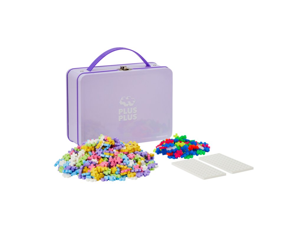 Kreativní sada PLUS-PLUS v kovovém kufříku Pastel ve kterém najdete vše, co potřebujete do začátků k tvoření s Plus-Plus. Balení obsahuje také návod na 2D mozaiky a 3D výtvory – zvířata, postavy, budovy a další. Set v kufříku obsahuje 500 dílků pastelových barev, 100 dílků Neon, 2 základní desky a návod.