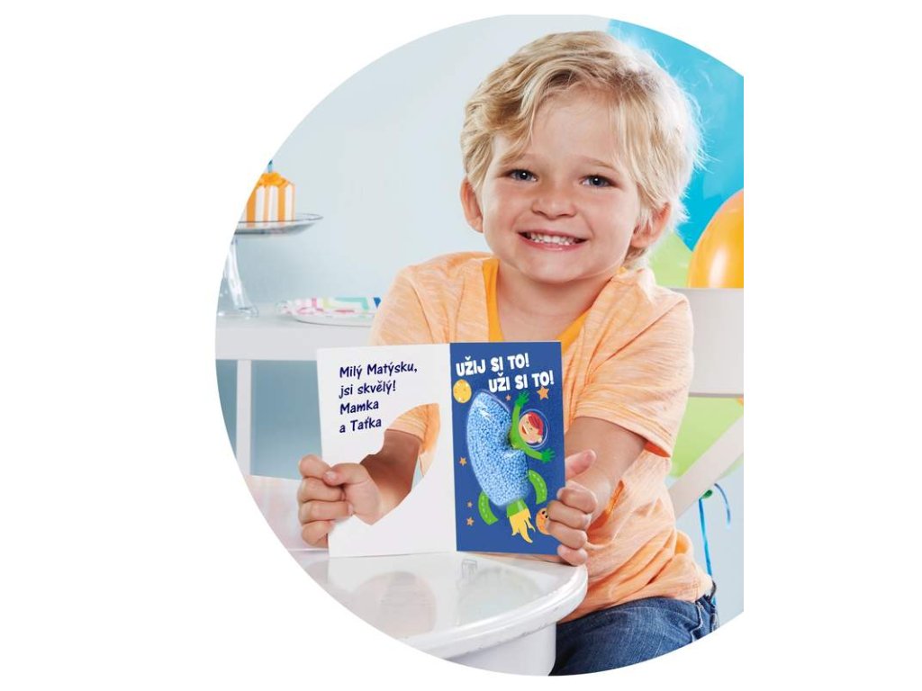 Přáníčko s modelínou PlayFoam® k NAROZENINÁM, je milé blahopřání a kreativní dárek v jednom! Po otevření se objeví nápis "UŽIJ SI TO!" a místo pro váš osobní vzkaz pro malého oslavence!