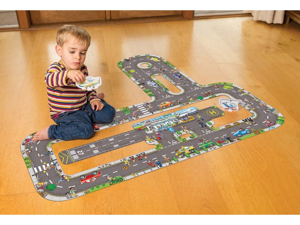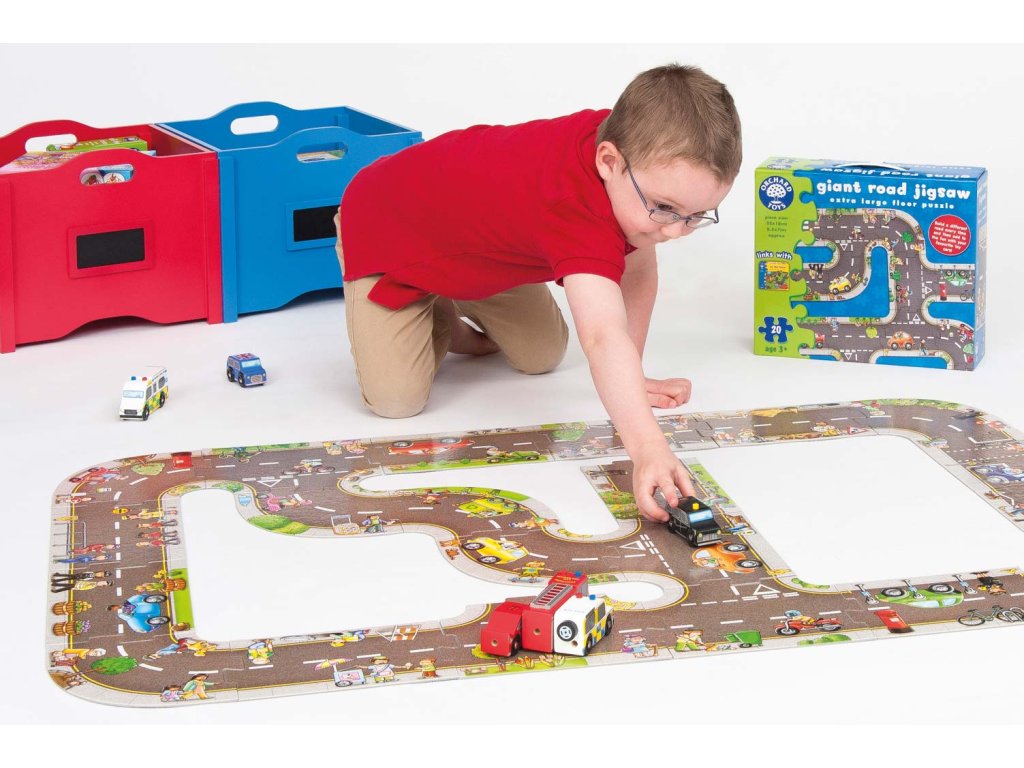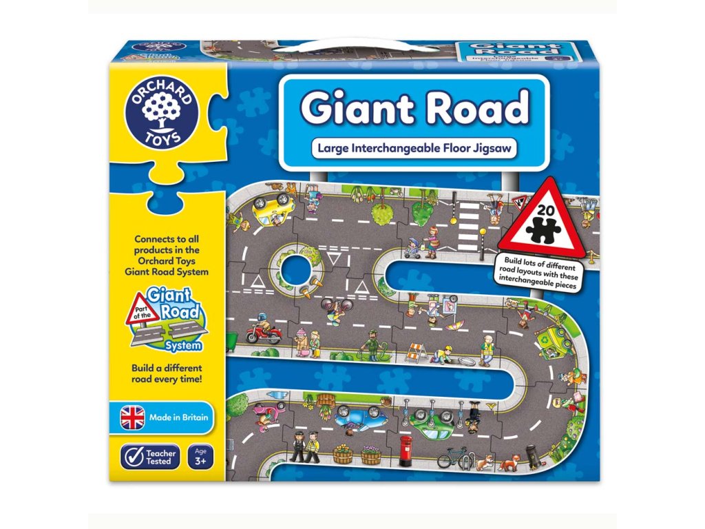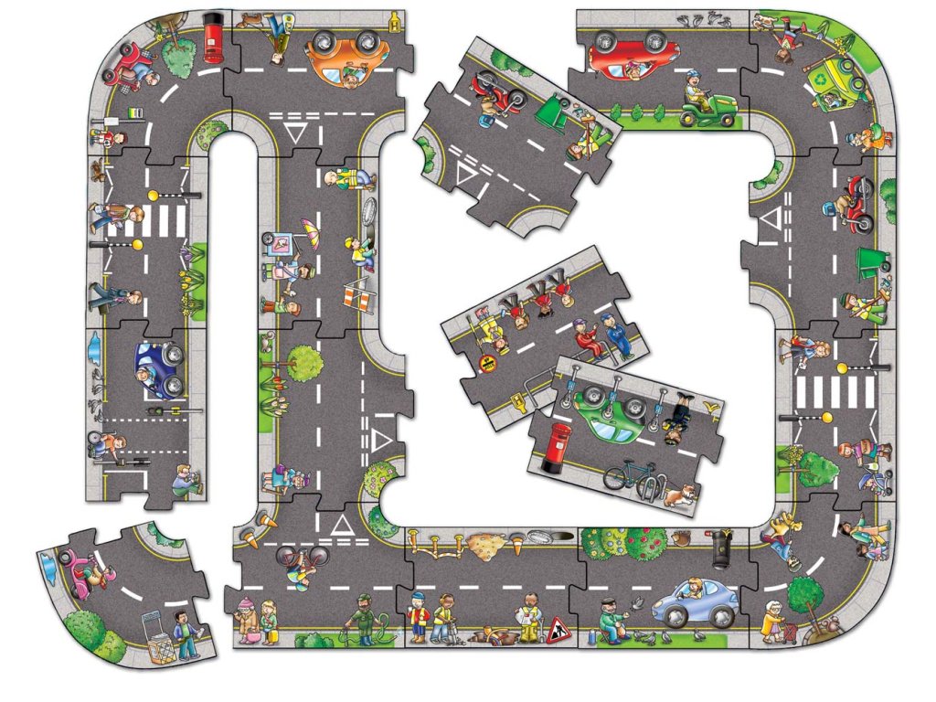 Velké podlahové puzzle SILNICE je jedinečná a opravdu velká netradiční skládačka. Puzzle lze poskládat až čtyřmi způsoby, pomocí 20 robustních puzzle z pevného kartonu.