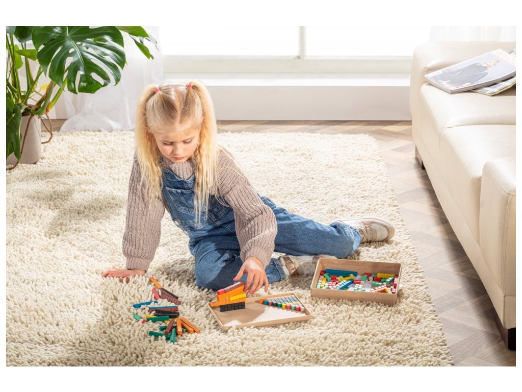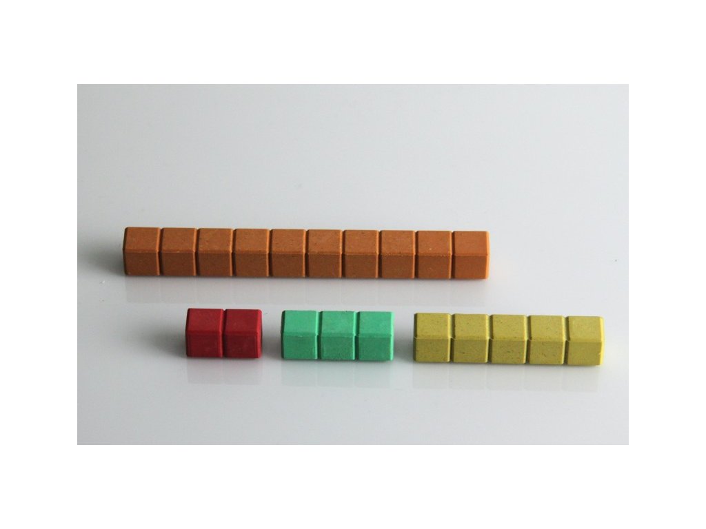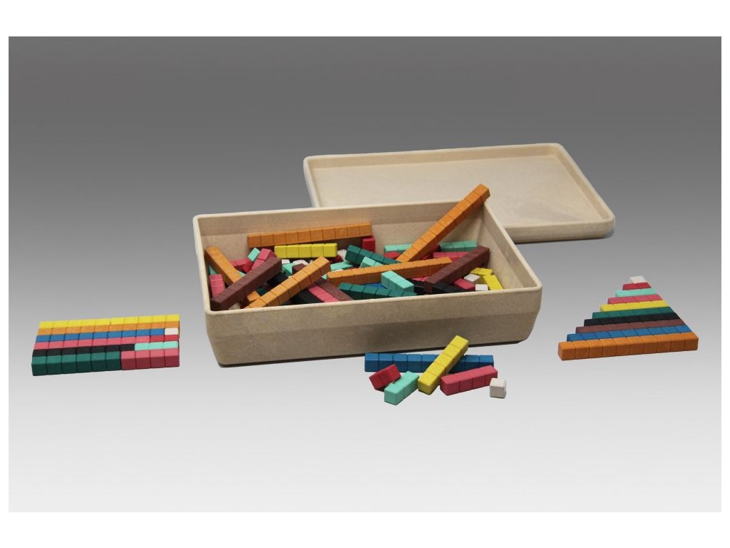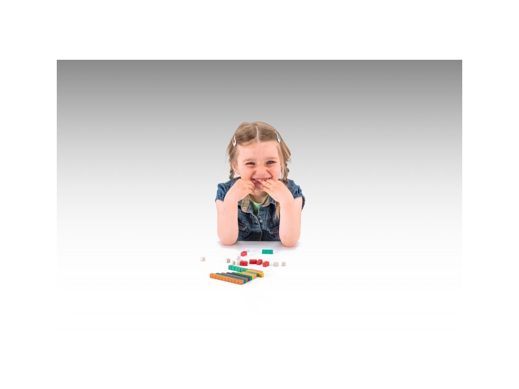 Barevné tyčky různých velikostí z RE-Wood® s frézovaným dělením. Ekologické výukové stavebnice vyrobené z recyklovaného dřeva ReWood® (tepelně a tlakově spojené mleté dřevo z lesního hospodářství s certifikátem PEFC 80 % a přírodní pojiva 20 %). Procvičují jemnou motoriku, trénují prostorovou představivost a zvyšují schopnost soustředění a koncentrace. Stavebnice je určená pro MŠ i ZŠ. Počítadlo v 10 barvách.Lze ideálně kombinovat se systémovými pracovními nástroji ReWood (například Číselná věž), RePlastic (například řady RePlastic Base Ten) , protože jednotlivé hodnoty jsou vzájemně barevně sladěny. Podporovaná kompetenceSčítání - sčítání s přidáváním a bez přidávání desítekMultiplikace - násobeníDělení - rozdělováníPorovnání počtu (více-méně)Objevování vztahů mezi počty kostiček v řadáchPoužívání odborných výrazů (např. desítky/stovky, polovina/dvojnásobek, násobek/dělitel a další). Zdůraznění struktury desítkové soustavy Obsahuje:36x jednička bílá 1x1x1 cm, 18x dvojka červená 2x1x1 cm, 18x trojka zelená 3x1x1 cm, 12x čtyřka růžová 4x1x1 cm, 8x pětka žlutá 5x1x1 cm, 6x šestka tmavě zelená 6x1x1 cm, 6x sedmička černá 7x1x1 cm, 6x osmička hnědá 8x1x1 cm, 8x devítka modrá 9x1x1 cm, 10x desítka oranžová 10x1x1 cm Dovednosti: Objevte číselný rozsah 1-10 Přiřazení barev k odpovídajícím číslům Vývoj pojmu čísla - Vývoj hodnotového systému desítek Rozvoj všech základních početních operací prostřednictvím viditelného zadání a hmatatelného, hravého učení Podpora při přechodu od vizuální reprezentace číselné řady k matematicky abstraktnímu aritmetickému procesu RE-Wood® je vyroben ze 100% recyklovaných a přírodních materiálů a lze jej po použití znovu a znovu recyklovat.