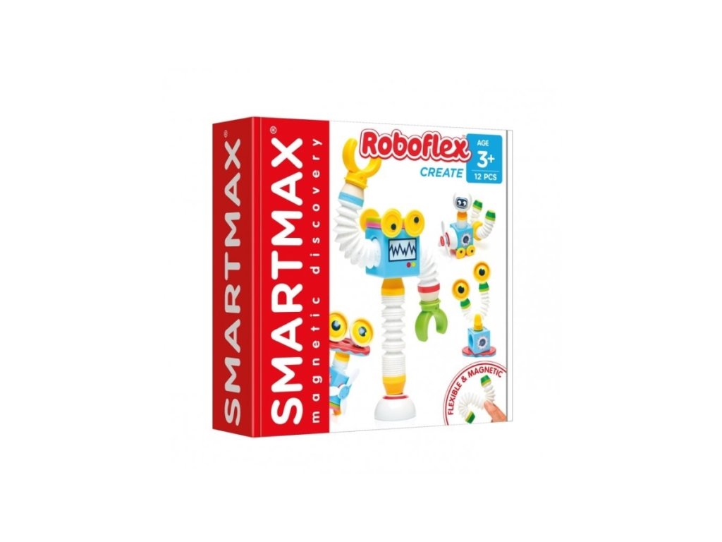 Kdo řekl, že roboti nejsou ohební? Buďte kreativní a vytvořte si vlastní flexibilní, bláznivé roboty! Je to jednoduché. Vyberte si magnetické dílky, ohněte je, roztáhněte, spojte pomocí magnetů dohromady a hrajte si! Nové, flexibilní, roztažitelné magnetické tyčky dodávají herní sadě SmartMax další rozměr. Chcete, aby váš robot skákal, létal či zvedal činku? Źádný problém. Dvanáctidílná sada včetně inspirativního plakátu pomáhá rozvíjet jemné motorické dovednosti a podporuje fantazii. Roboflex je zábavná magnetická stavebnice a lze jí kombinovat se všemi ostatními sadami SmartMax. Jste připraveni na nové flexibilní kamarády roboty? Tady jsou. Stavebnice je ideální dárek pro děti od 3 let.