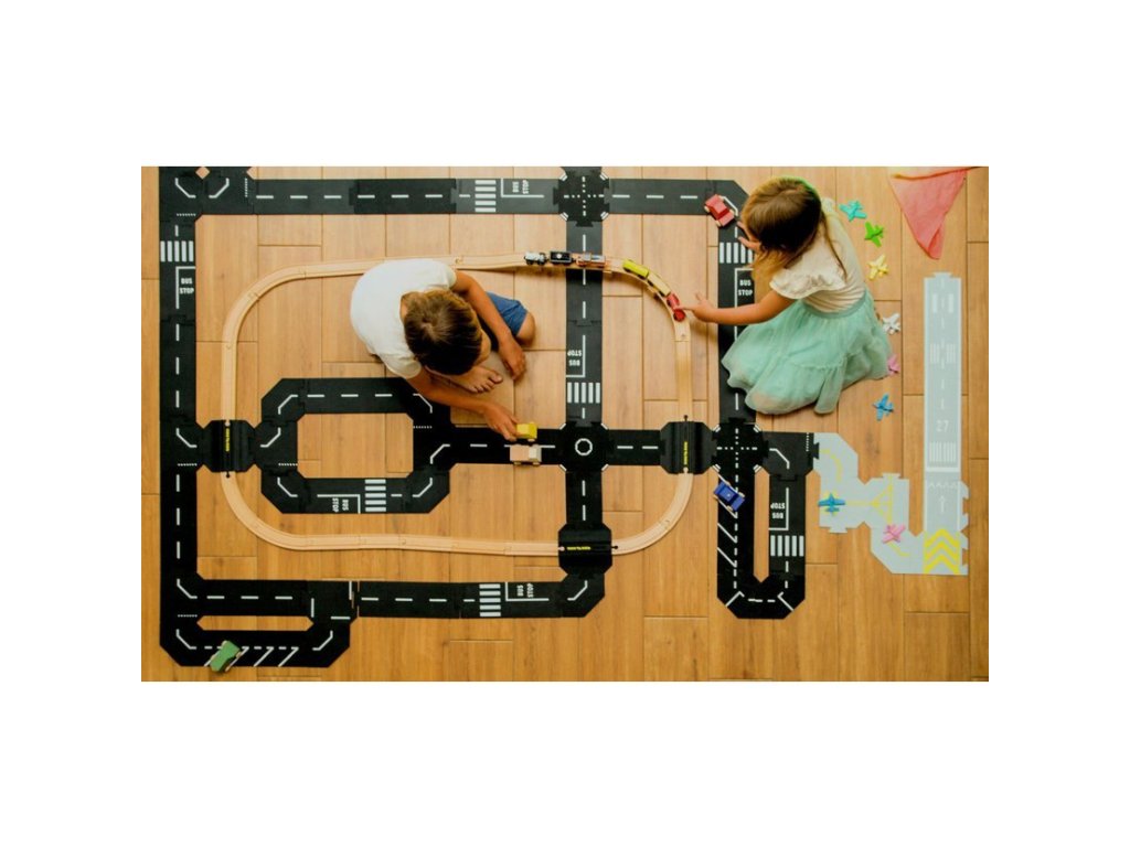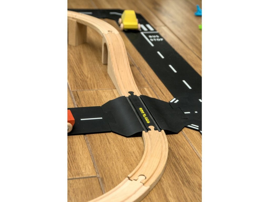 ŽELEZNIČNÍ PŘEJEZD SE SILNICÍ je malá rozšiřující sada, ve které je inovativní přejezdový prvek, který slouží k propojení sady MĚSTO nebo METROPOLE s dřevěnými kolejemi například značky MAXIM nebo BRIO, což jistě nadchne většinu malých milovníků železnic a silničního provozu, kteří nyní se svými autíčky mohou snadno přejíždět přes oblíbené koleje. Balení obsahuje 1 přejezd a 1 rovnou oboustrannou kratší silnici. Vhodné pro děti od 1 roku.