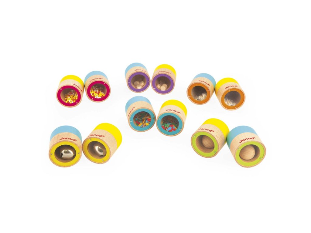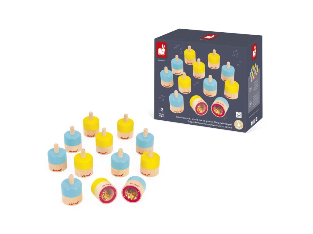Rozvíjejí své asociační a sluchové schopnosti a zároveň se baví. Je nezbytné, aby si děti rozvíjely sluchovou paměť, protože jim pomáhá lépe porozumět a rozvíjet svůj jazyk a dodržovat pokyny, což jim zase pomáhá učit se ve škole. Využijte této zábavné stolní hry a objevte spoustu zvuků: zvonky, písek, dřevěné nebo plastové kuličky, dřevěné nebo kartonové dílky...